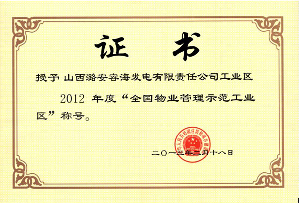 容海發(fā)電項(xiàng)目獲“全國(guó)物業(yè)管理示范工業(yè)區(qū)”稱(chēng)號(hào)